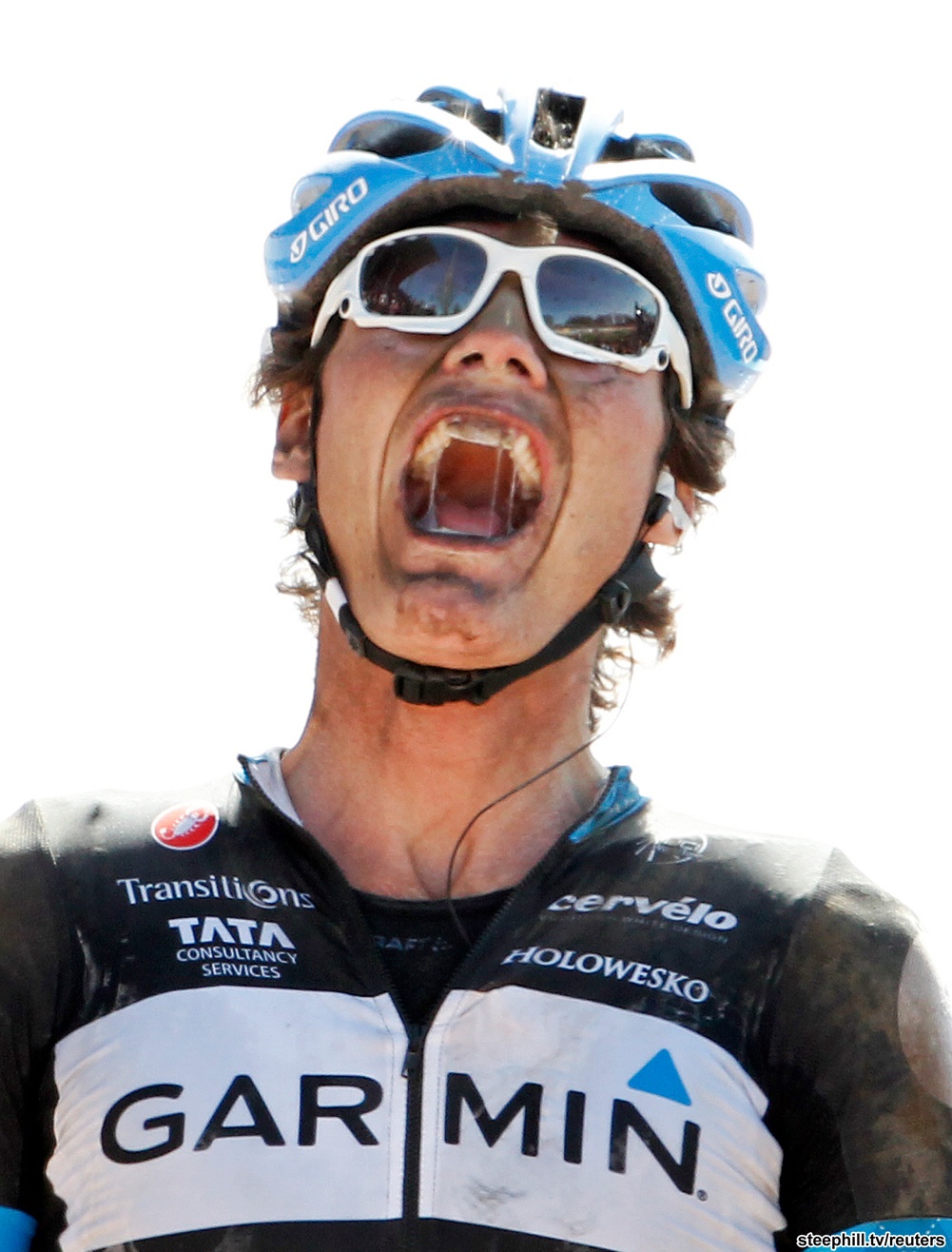[2011 Paris-Roubaix Winner, Johan Vansummerenwinning the bike race after a 15km solo breakaway]