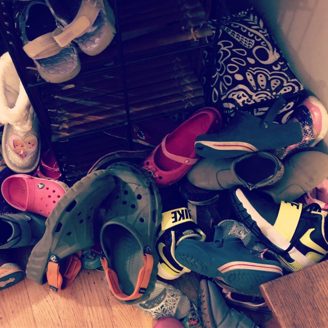 Sometimes, maybe a lot of times, we’re in a hurry to get to the next thing, once we get home. And so we throw off our shoes upon arrival, and they end up in the pile.