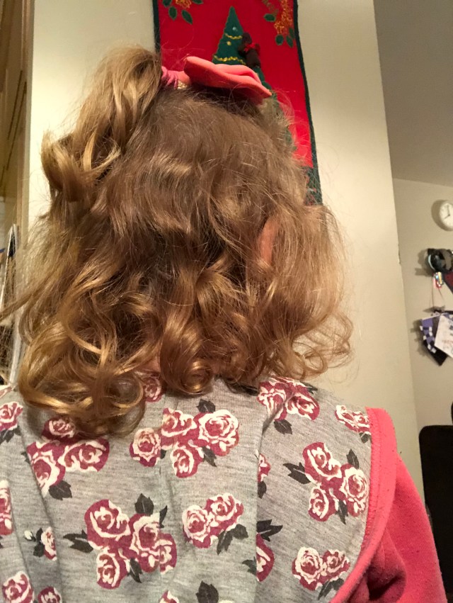 My X Factor seemed ready for school this fall, but it’ll be another year before she starts Kinder. When she gets there, she’s going to rock it. And her hair gets curlier by the day, it seems. 🙂