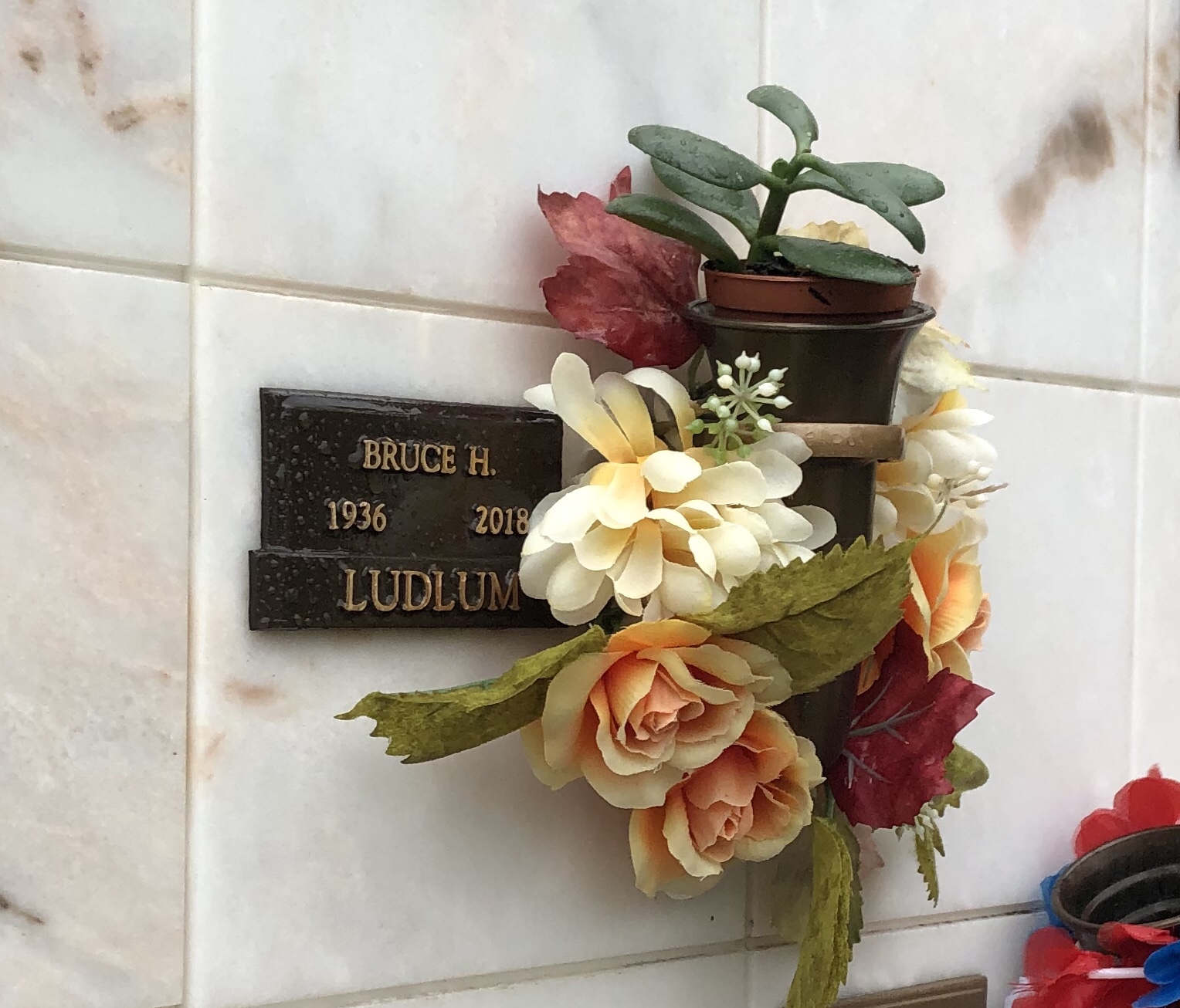 Dad’s here too now, on the wall, a little niche, nice for us, for me, a spot to rest, easy to get to, in between.