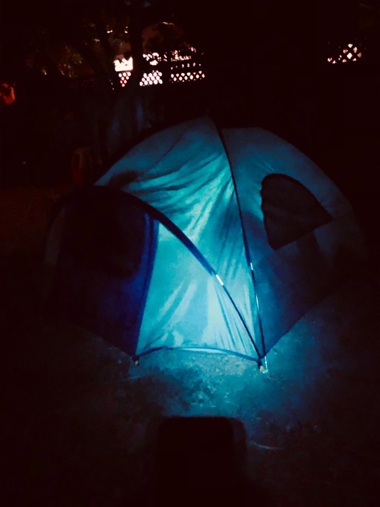 This space where we spend time gives me peace. Dark and cramp, in a tent in a backyard campsite.