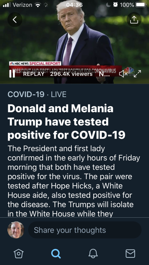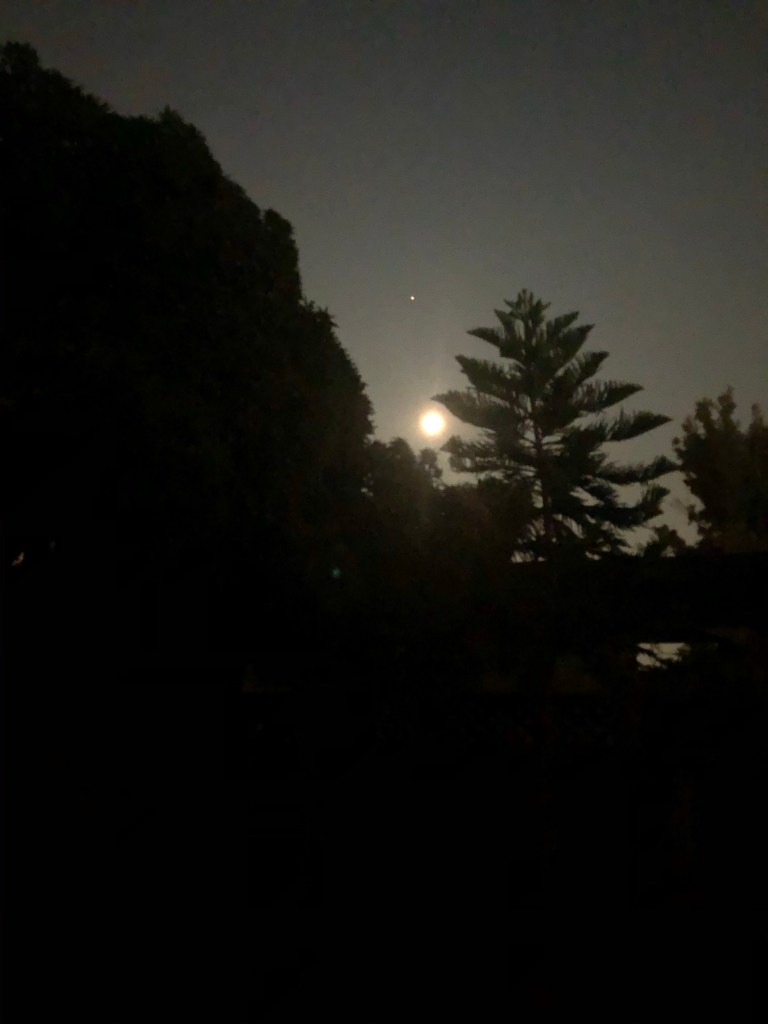 Early up, more often; helps sooth the anxieties of the day.Halloween is coming; decorations in the neighborhood.One of my favorite bands from long ago; listened anew; it was great.That debate; WOW; I wish I’d had a bit of whisky like David Brooks did; good call, David.Another beauty in the neighborhood.It was a good month for the blog; thanks for that.The moon’s been spectacular all week.The air’s gotten worst; another wild fire burns in the region.As the weekend begins, we ponder the Trumps testing positive for COVID.