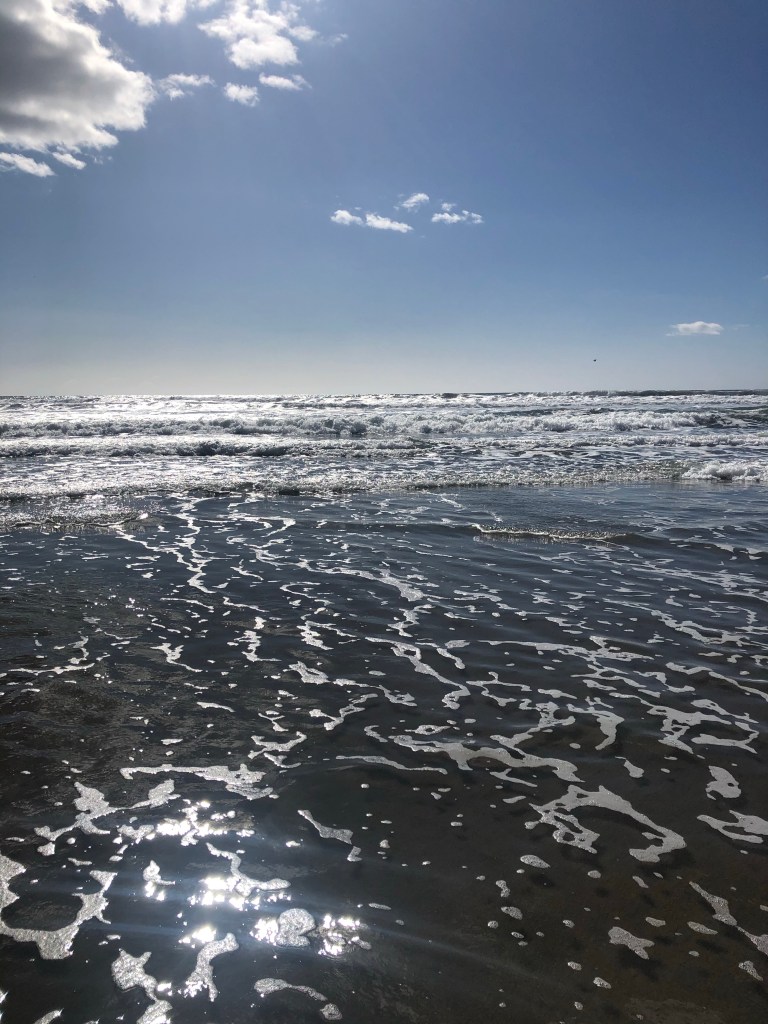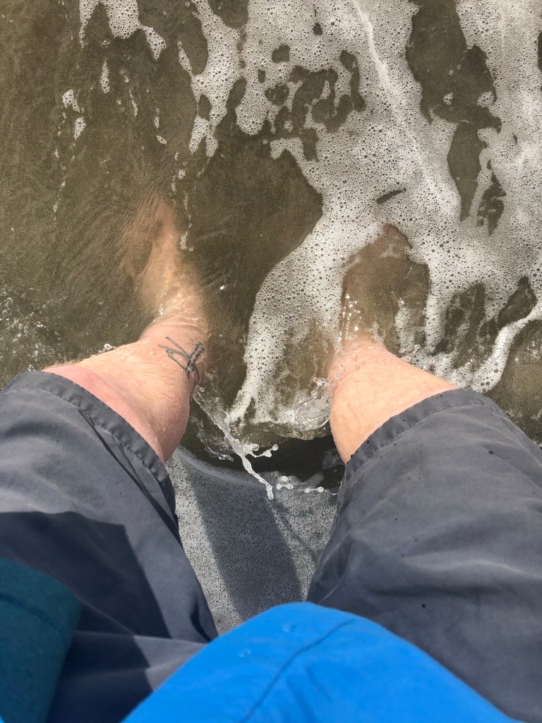 Or standing in the ocean with him, teaching him to hold his ground and the water rushes in, rushes out.