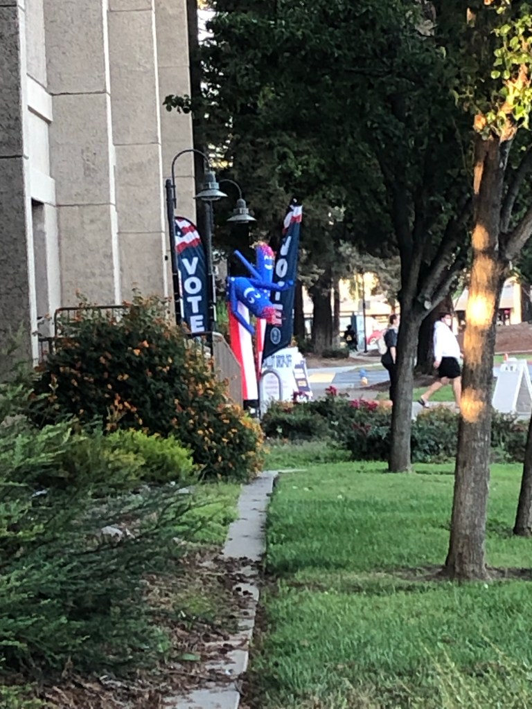 People meander in and out of the ROV building, dropping off ballots. Cars slowly creep through the parking lots. There’s a nice breeze.