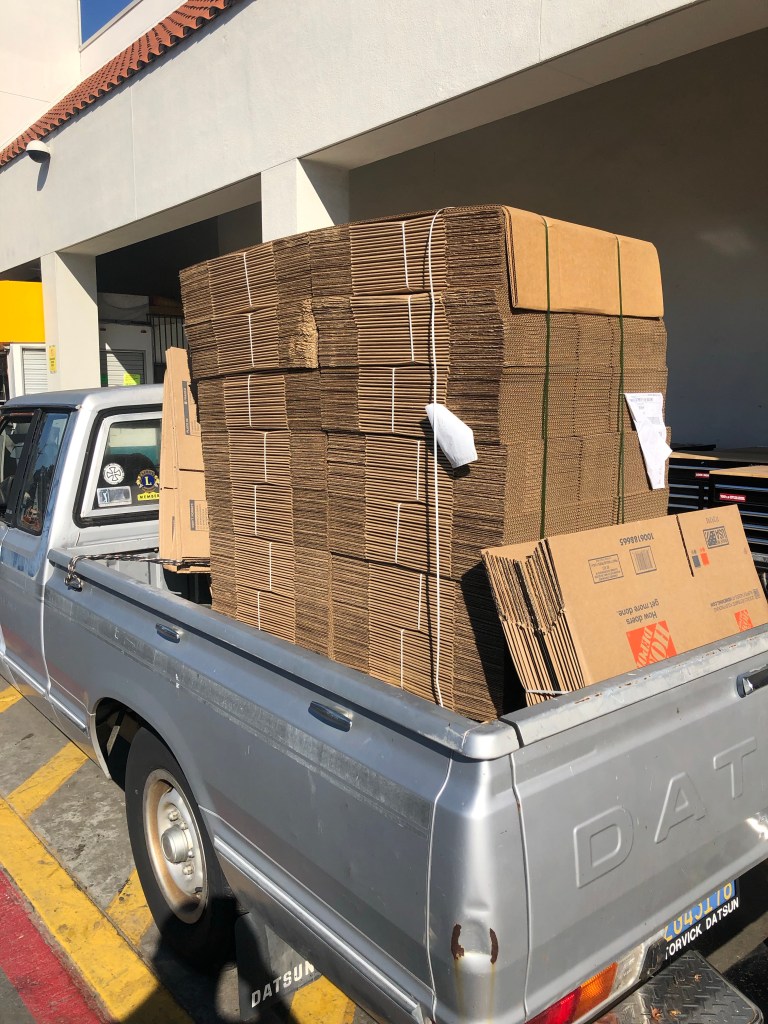 Boxes delivered, ready for the prep: 340 boxes of food, 170 families, maybe about 700 people benefiting … GOOD.