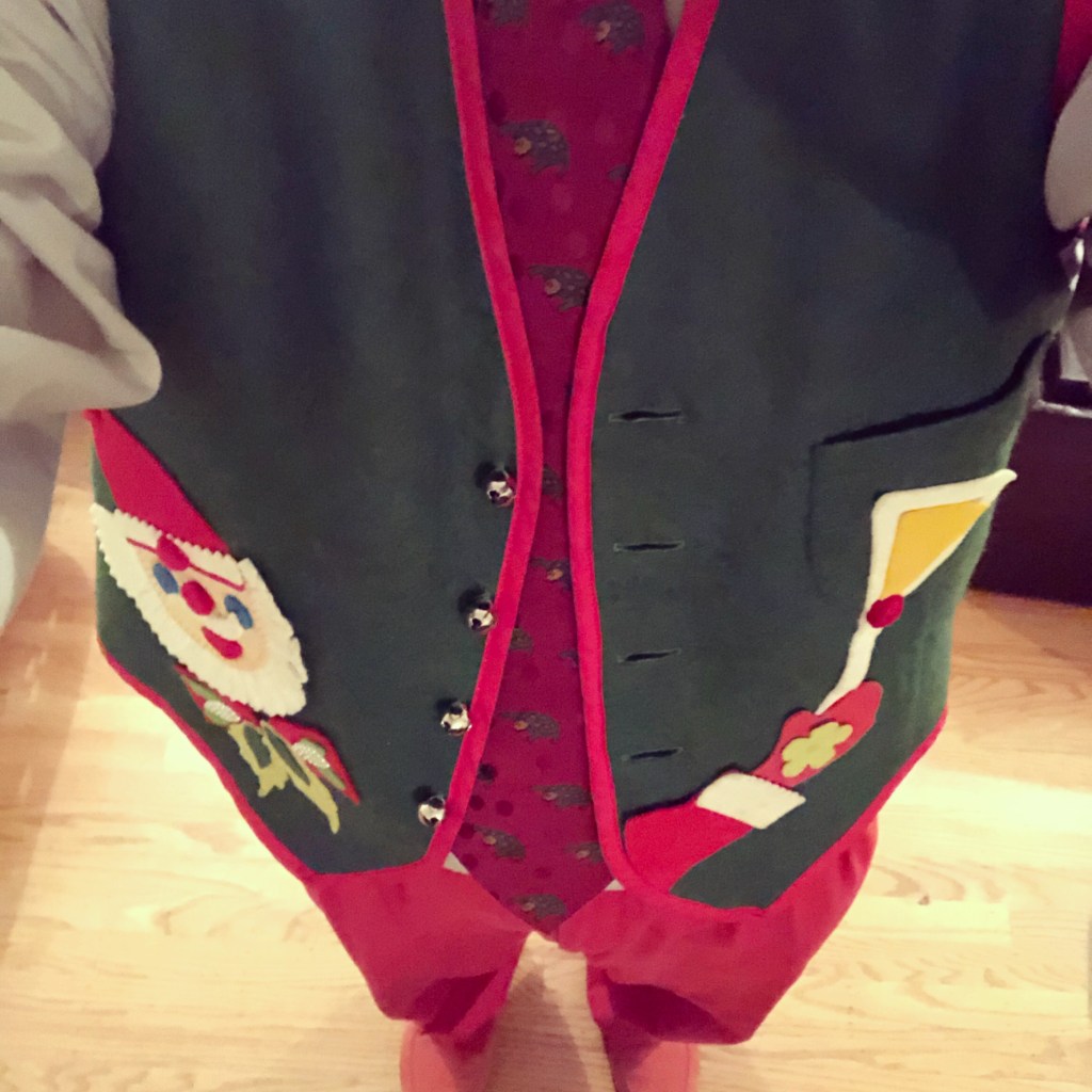 His daughter, mother to my sisters-in-law, humbled me with a gift a few years, a home-made holidays vest.