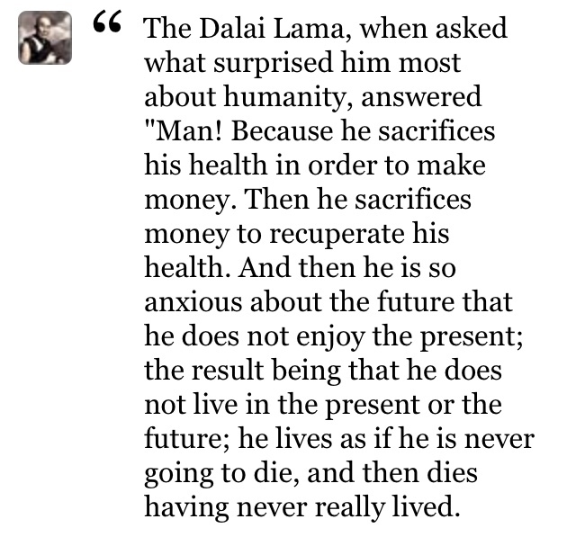 Should add the perspective re “worry about future” Jesus’ similar teaching in prayer, “…give us our daily bread…”, Buddhist or Christian, a similar observation…