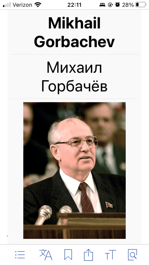Gorbachev died yesterday, 30 August, at the age of 91 (a great life!).