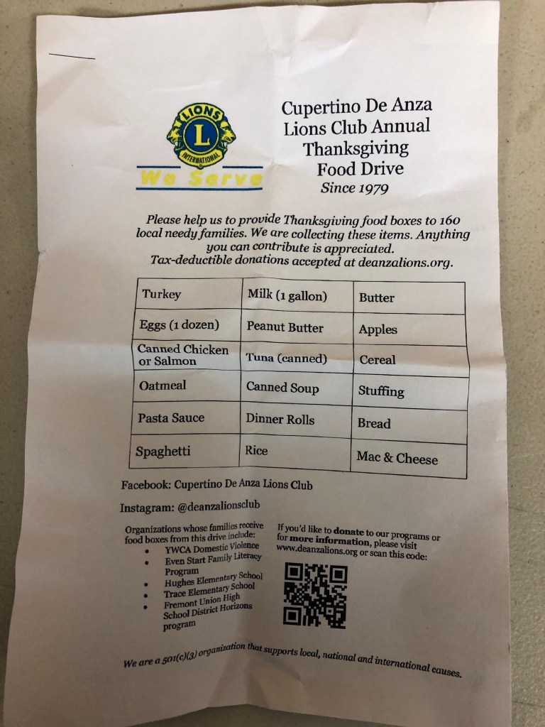 Wake of the 44th Annika DeAnza Lions Club Thanksgiving Food Drive,