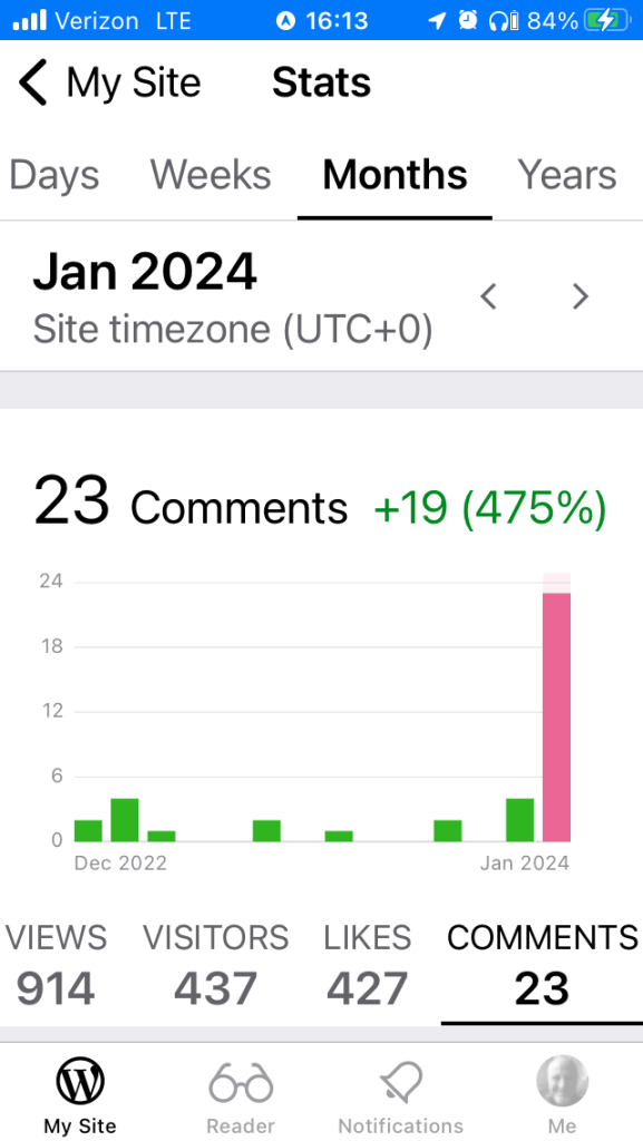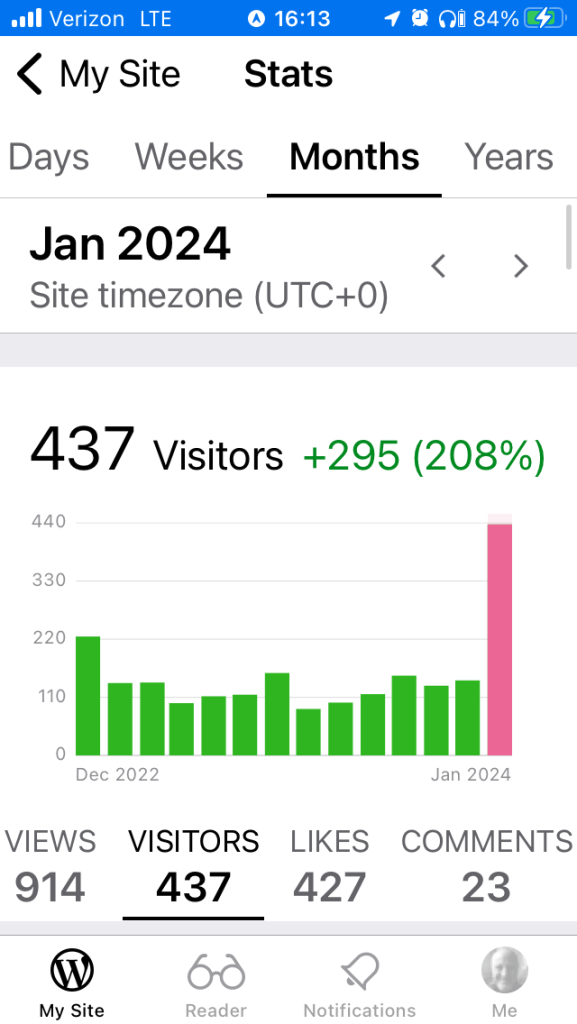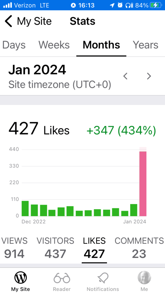 With Bloganuary as a prompt and channel to the broader WordPress (WP) Community with some context, my blog 1/2_Full, All GOOD got more Views, Visits, Likes, and Comments.