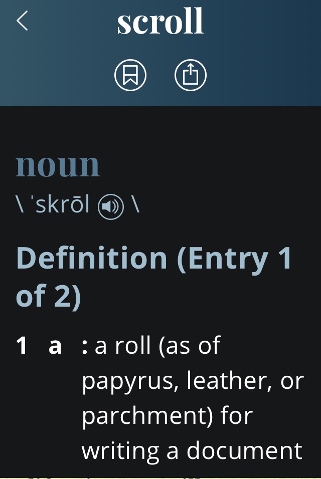 Addendum Bit: Considering additional, thinking about another definition for “scroll”,