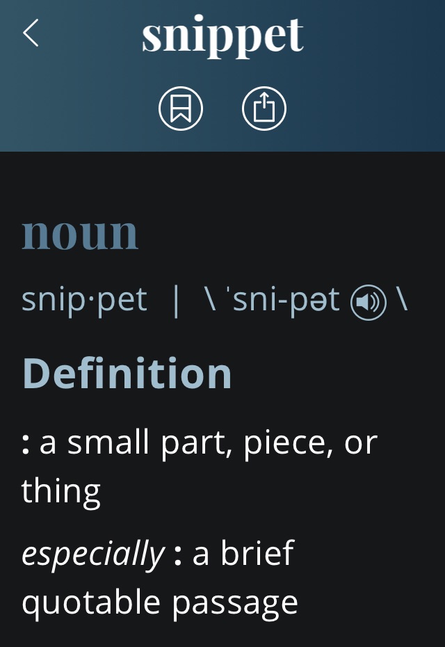 Snippet, a little bit, something special; the skill to work in bits, for sure something special. And clarifier if you will,