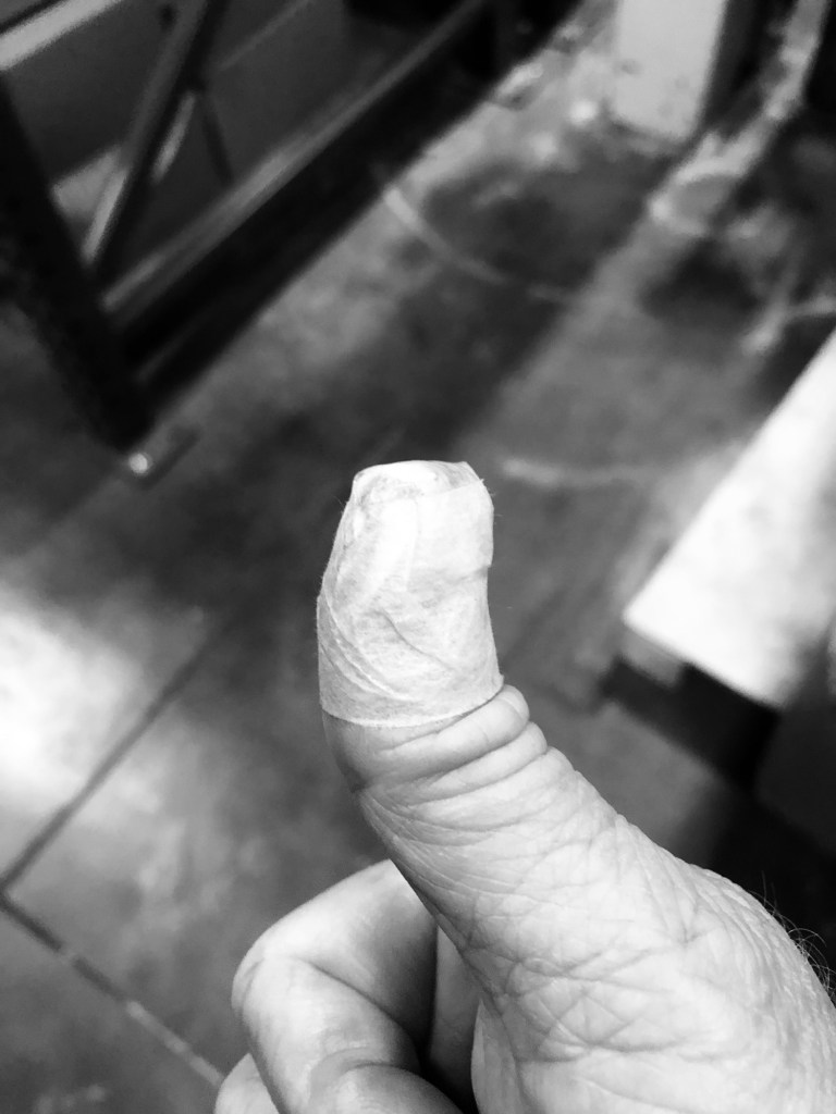 Recently in cut my right thumb will loading some boxes; didn’t stop bleeding without direct pressure for a long while.