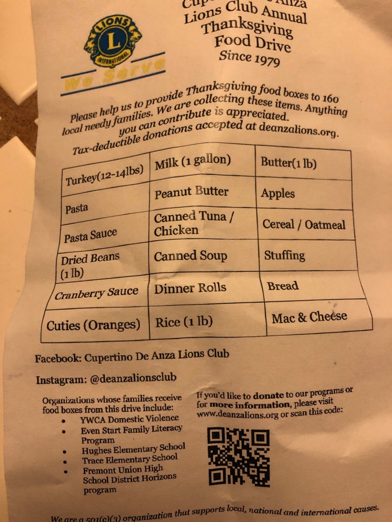 Here in the Santa Clara Valley, for more than 30 years, feeding over 100 families for Thanksgiving, now up to over 170 families, and through other channels, with the same project, feeling about 1000 people for the holiday,