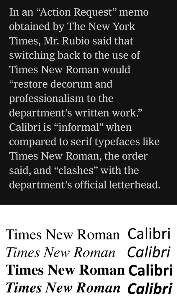 Too much for me. Times New Roman is fine, but I’m sticking with Calibri.