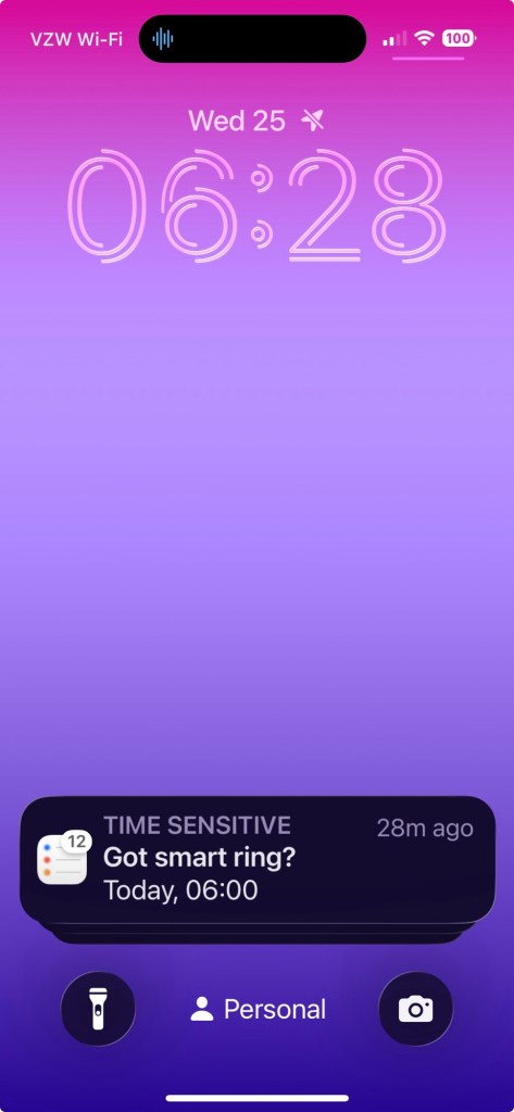 Two reminders, “Got ring?”, didn’t help, one in the morning, one at night, didn’t help, missed them,
